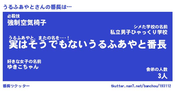 | 肩書あだ名 | 『うるふあやと御曹司』 |