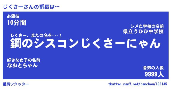 | 意味不明あだ名 | 『ペロリンじくさー』『永久保存じくさー』 |