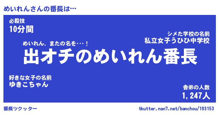 | 意味不明あだ名 | 『ペロリンめいれん』『永久保存めいれん』 |