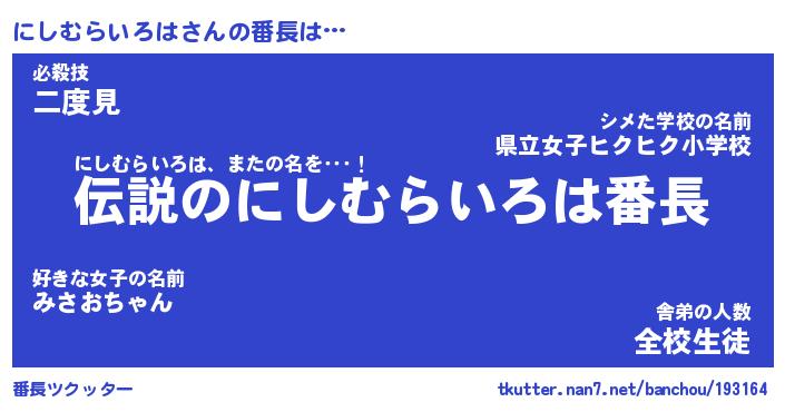 | 肩書あだ名 | 『にしむらいろは御曹司』 |