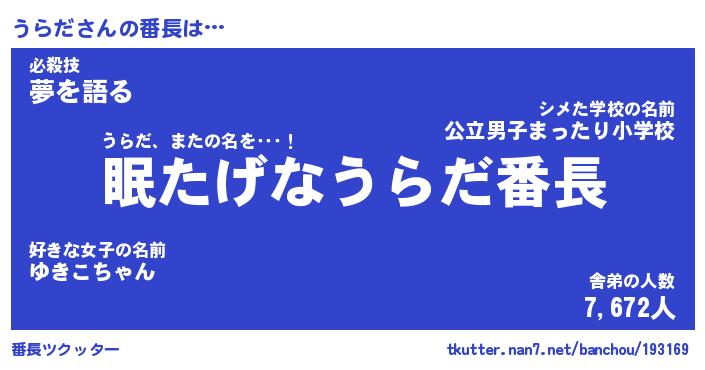 | 意味不明あだ名 | 『ペロリンうらだ』『うらだフォーエバー』 |