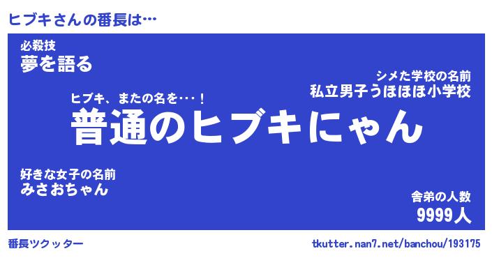 | 肩書あだ名 | 『ヒブキ御曹司』『ヒブキ総理大臣』 |