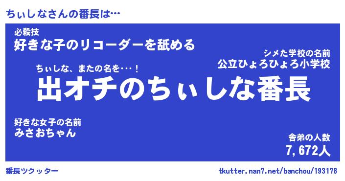 | ファンタジー風あだ名 | 『チィフェル』『エターナルチィシナー』 |