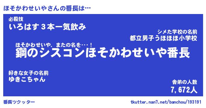 | 肩書あだ名 | 『ほそかわせいや店長』 |