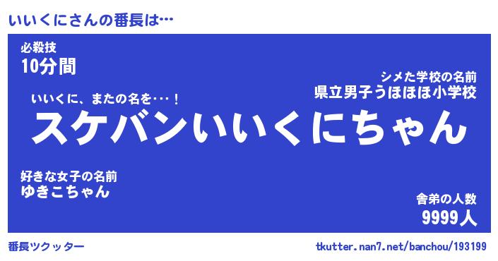 | ヒーロー風カッコイイあだ名 | 『スーパーイイクニ』『天弓騎士イイ』 |