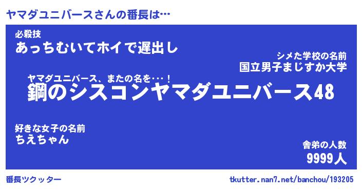 | 意味不明あだ名 | 『ペロリンヤマダユニバース』 |