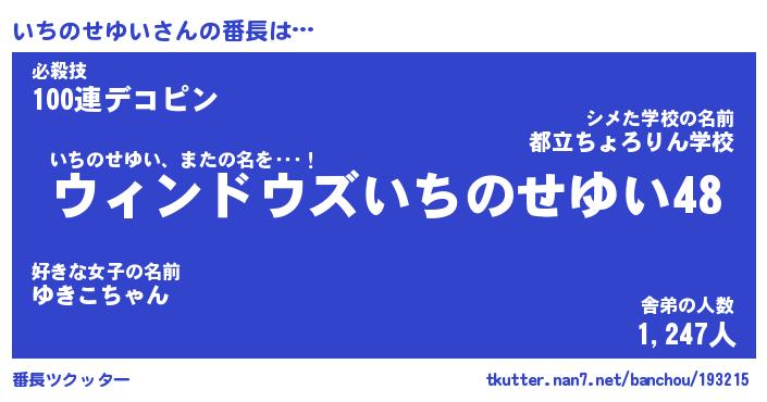 | 伝説のあだ名 | 『伝説のスナイパーいちのせゆい』 |