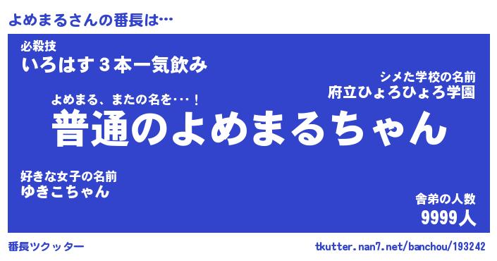 | 肩書あだ名 | 『よめまる店長』『よめまる大統領』 |