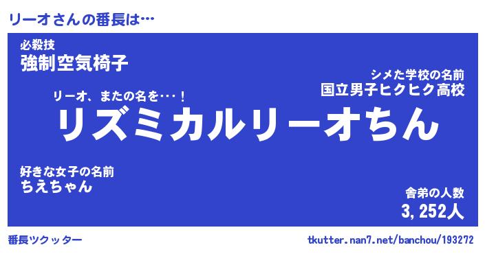 | ヒーロー風カッコイイあだ名 | 『スーパーリーオ』『ウルトラリーオマン』 |