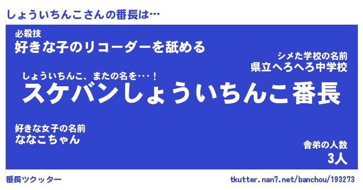 | ツイッター | しょういちんこさんのツイッターID『katatsumuri_nyan』 |