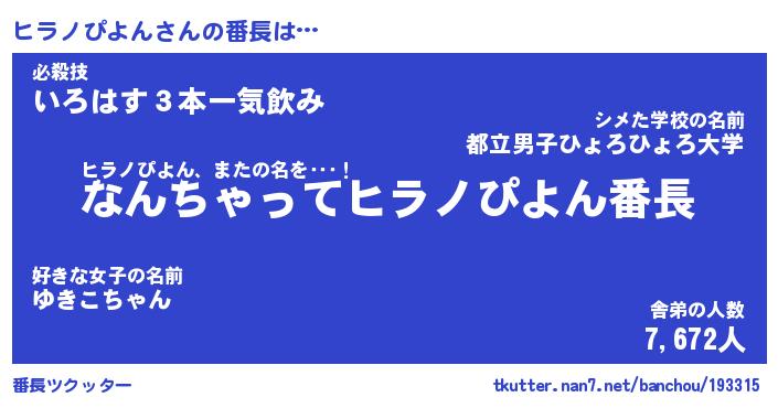 | 伝説のあだ名 | 『伝説のスナイパーヒラノぴよん』 |