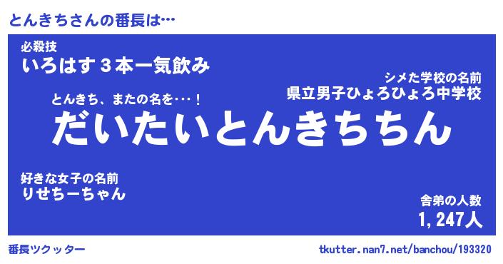 | 意味不明あだ名 | 『ペロリンとんきち』『永久保存とんきち』 |