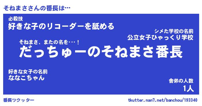 | 2回繰り返すあだ名 | 『そねそね』『そそねね』『ぬめぬめ』 |