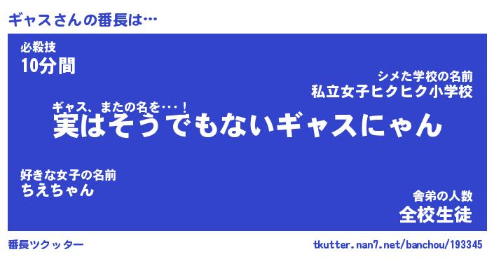 | ピコ太郎風あだ名 | 『ギコ次郎』『ピギ一郎』『ギャ八郎』 |