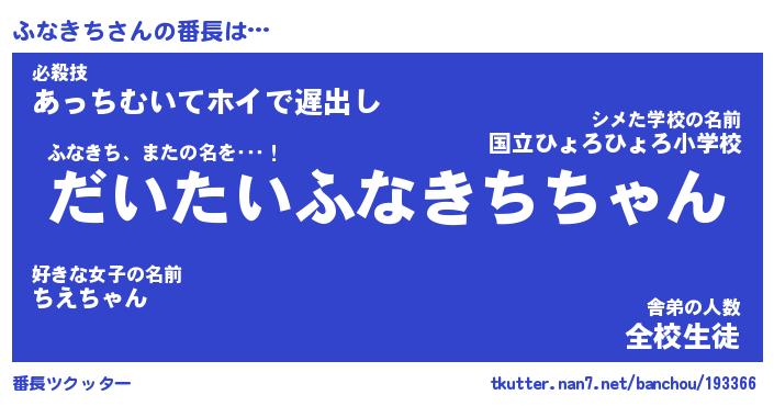 | ファンタジー風あだ名 | 『フナフェル』『エターナルフナキチー』 |