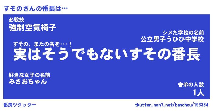 | ヒーロー風カッコイイあだ名 | 『スーパースソノ』『ウルトラすそのマン』 |