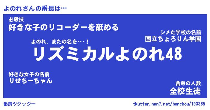 | 意味不明あだ名 | 『ペロリンよのれ』『よのれフォーエバー』 |