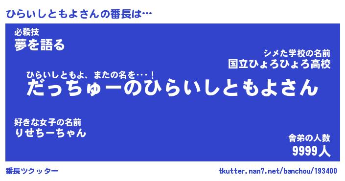 | ヒーロー風カッコイイあだ名 | 『スーパーヒライシトモヨ』 |
