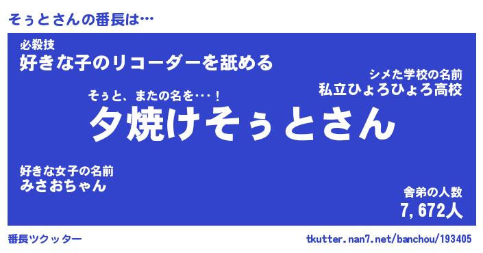 | 伝説のあだ名 | 『封印されしスナイパーそぅと』 |