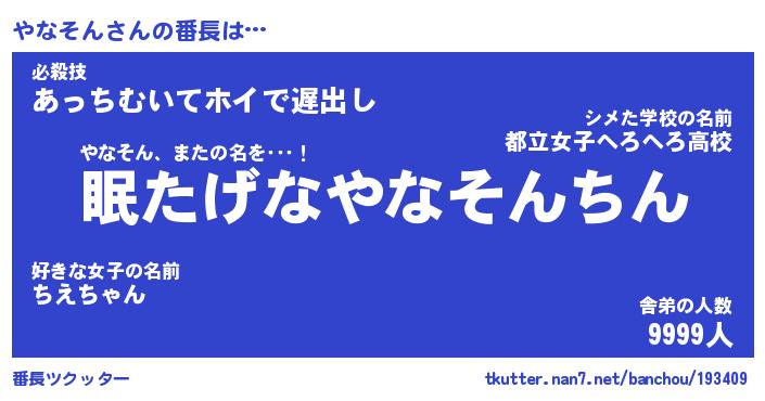 | 意味不明あだ名 | 『ペロリンやなそん』『永久保存やなそん』 |