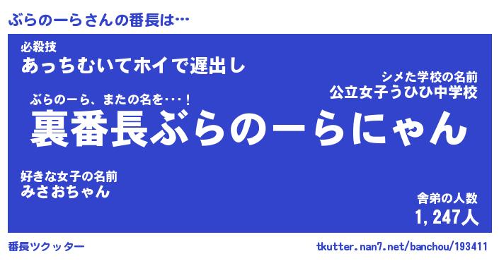 | ヒーロー風カッコイイあだ名 | 『スーパーブラノーラ』『銀牙騎士ブラ』 |