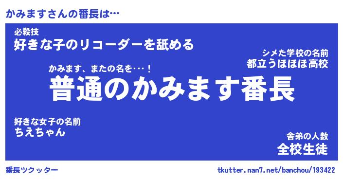 | 肩書あだ名 | 『かみます店長』『かみます国家主席』 |