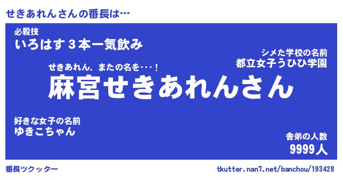 | 肩書あだ名 | 『せきあれん御曹司』『せきあれん大統領』 |