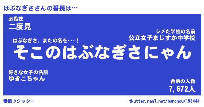 | ヘコむあだ名 | 『はぶにゅー』『酢こんぶ』『はぶを』 |