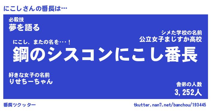 | 肩書あだ名 | 『にこし店長』『にこし国家主席』 |