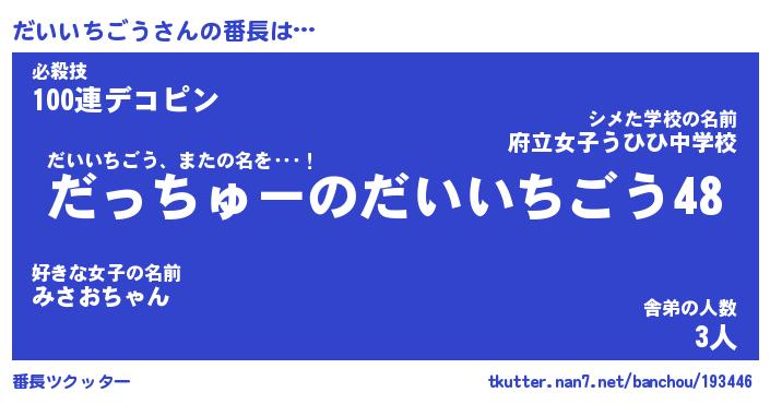 | ヒーロー風カッコイイあだ名 | 『スーパーダイイチゴウ』『黄金騎士ダイ』 |