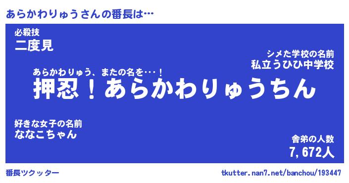 | ヒーロー風カッコイイあだ名 | 『スーパーアラカワリュウ』 |