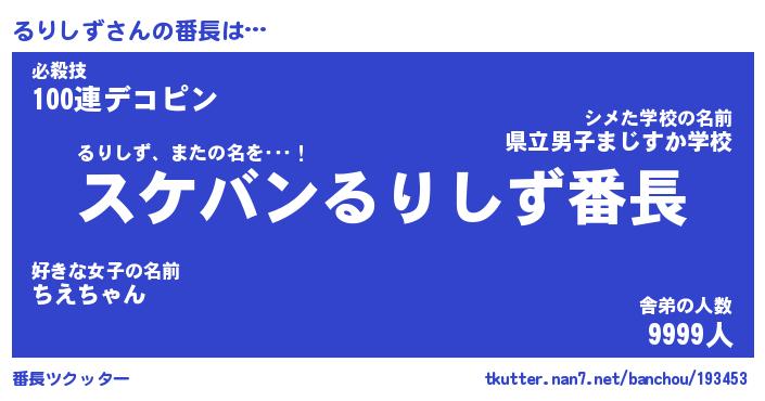 | 意味不明あだ名 | 『ペロリンるりしず』『永久保存るりしず』 |