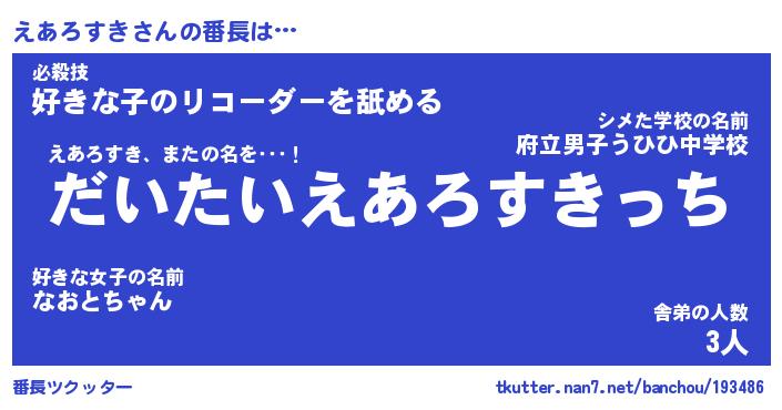 | 2回繰り返すあだ名 | 『えあえあ』『ええああ』『ぬらぬら』 |