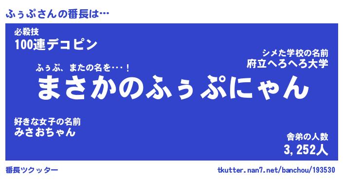 | ヒーロー風カッコイイあだ名 | 『スーパーフゥプ』『ウルトラふぅぷマン』 |