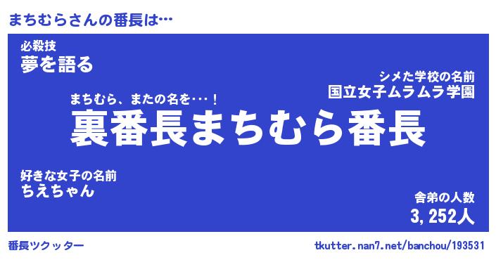 | 意味不明あだ名 | 『ペロリンまちむら』『永久保存まちむら』 |