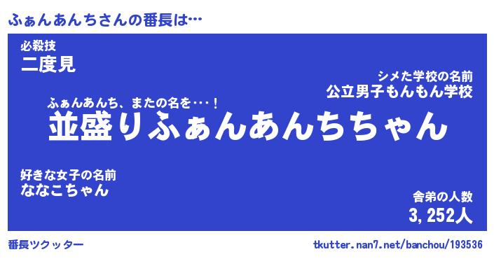| 2回繰り返すあだ名 | 『ふぁふぁ』『ふふぁぁ』『ぬぷぬぷ』 |