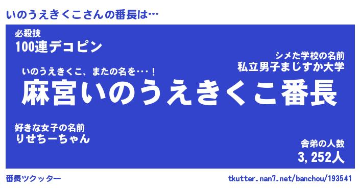 | ピコ太郎風あだ名 | 『イコ太郎』『ピイ太郎』『イノ三郎』 |