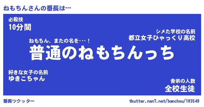 | 肩書あだ名 | 『ねもちん御曹司』『ねもちん国家主席』 |