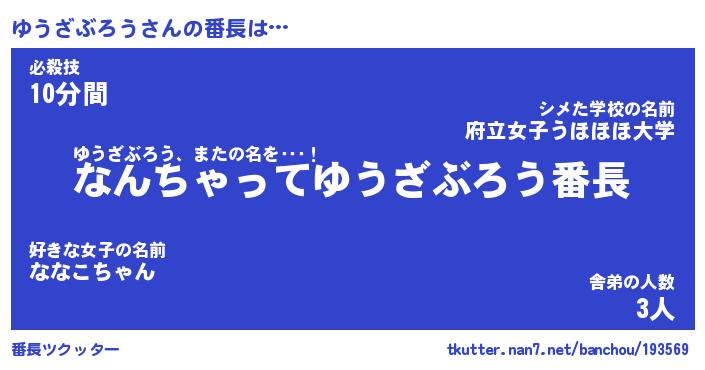 | 男性向けラノベタイトル風あだ名 | 『ゆうざぶろうの憂鬱』 |
