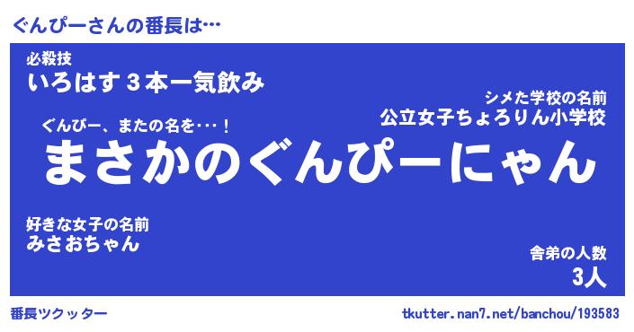 | 意味不明あだ名 | 『ペロリンぐんぴー』『永久保存ぐんぴー』 |