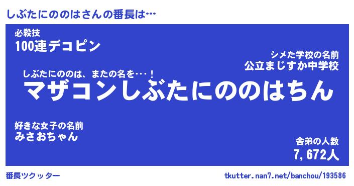 | 2回繰り返すあだ名 | 『しぶしぶ』『ししぶぶ』『ぬれぬれ』 |