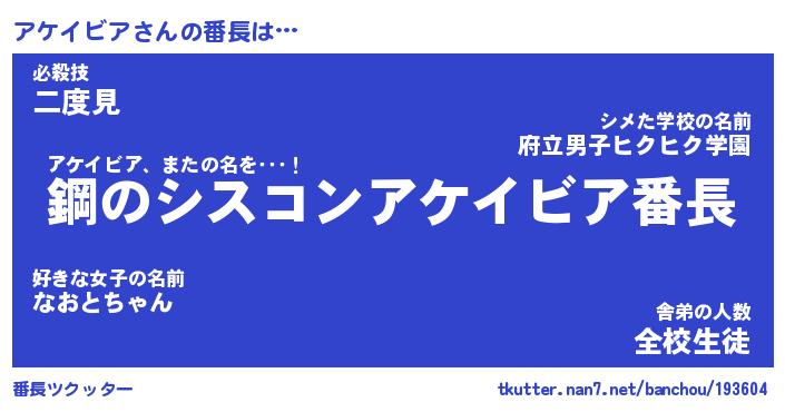 | 肩書あだ名 | 『アケイビア社長』『アケイビア総理大臣』 |