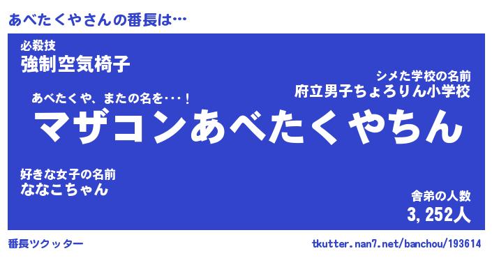 | ヘコむあだ名 | 『あべふぇ~』『牛乳』『あべっぺ』 |