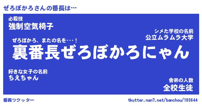 | ファンタジー風あだ名 | 『ゼロフェル』『エターナルゼロボカロー』 |