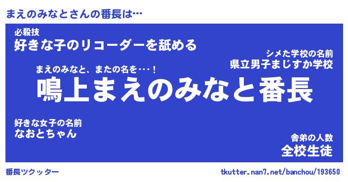 | 恥ずかしいあだ名 | 『プリティーまえのみなと』『まえっちょ』 |