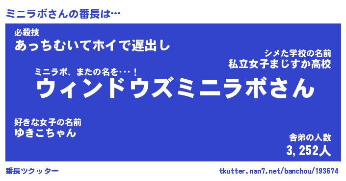 | 意味不明あだ名 | 『ペロリンミニラボ』『永久保存ミニラボ』 |