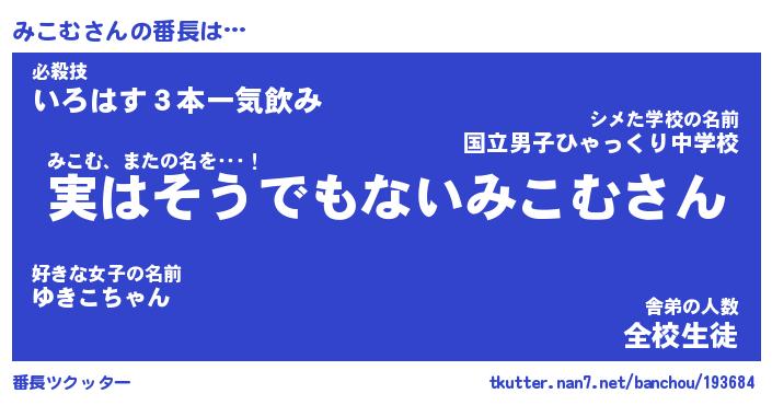 | ヒーロー風カッコイイあだ名 | 『スーパーミコム』『ウルトラみこむマン』 |