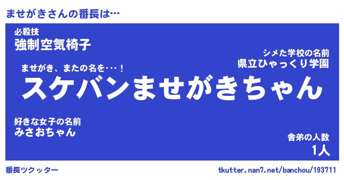 | ヘコむあだ名 | 『ませもー』『牛乳』『ませを』 |