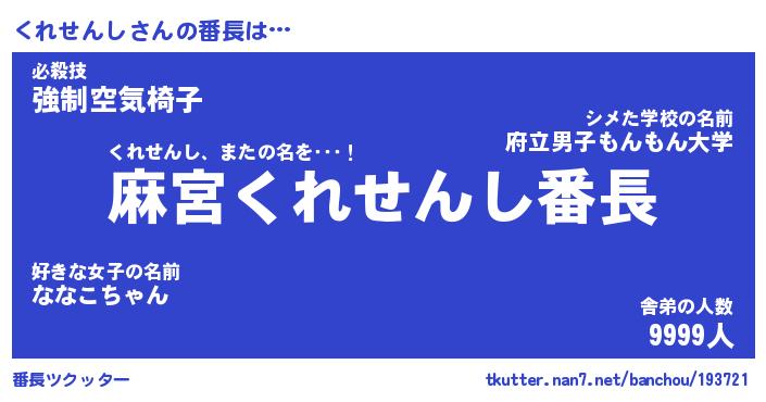肩書あだ名 | 『くれせんし店長』『くれせんし国家主席』 |