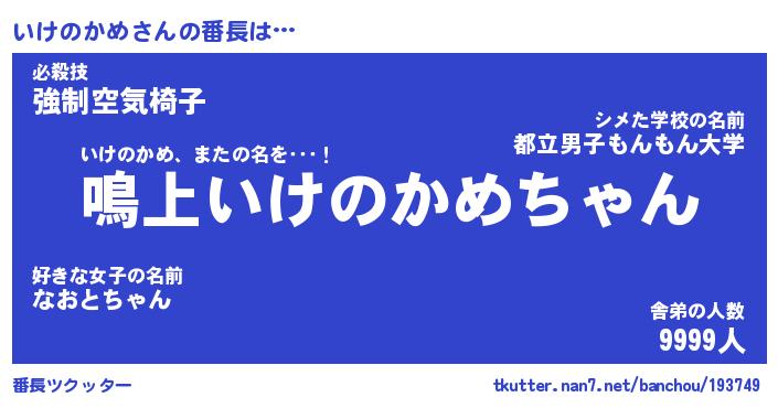 | 肩書あだ名 | 『いけのかめ御曹司』『いけのかめ塾長』 |